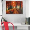 "الخريف" لوحة مناظر طبيعية آسرة تغمر المشاهدين بأحضان الخريف الدافئة الذهبية. يستخدم الفنان بمهارة لوحة تهيمن عليها الألوان الحمراء والبرتقالية والصفراء النارية لتصوير مسار في الغابة مغطى بأوراق الشجر المتساقطة. تجذب التركيبة العين نحو أفق بعيد، حيث يتسرب الضوء عبر الأشجار، مما يخلق شعورًا بالعمق والهدوء. مقعد منعزل يدعو إلى التأمل، ويضيف عنصرًا بشريًا إلى هذا المشهد الطبيعي الهادئ. تجسد هذه اللوحة بشكل جميل جوهر الخريف، وتستحضر مشاعر الحنين والسلام.