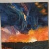 في اندماج ساحر بين الشفق والكون، يجسد هذا العمل الفني سحر أمسية سماوية. السماء، المرسومة بزرقتها العميقة ومجراتها الدوامة، مضاءة بدرجات ذهبية لغروب الشمس الخافت. أشجارٌ شامخةٌ ترقص في الأفق، بينما يعكس مسطح مائي هادئ في البعيد آخر ضوء للنهار. يخلق هذا التفاعل بين الواقعية والخيال أجواءً حالمة، تدعو المشاهدين إلى الانغماس في رحاب الكون.