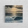 منظر بحري كئيب يجسّد الأمل في الظلام، وأشعة شمس بعيدة تتلألأ فوق الأمواج المتلاطمة. يبعث برسالة مفادها أن هناك دائمًا نور في نهاية النفق.