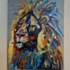 صورة نابضة بالحياة وديناميكية للأسد ذو عرف ملون، تلتقط جلالة الحيوان وقوته من خلال ضربات فرشاة جريئة وبقع من الألوان.