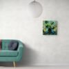 تركيبة ساحرة ومحكمة، الخروج من الماء تلتقط هذه اللوحة لحظة من الهدوء والغموض. طفل صغير، بنظرة عميقة مليئة بالدهشة والبراءة، ينهض من الماء، محاطًا بأوراق زنبق وارفة وضخمة. تقنية المزج السميك تُضفي على الأوراق ملمسًا ملموسًا، يكاد يكون نحتيًا، مما يجعلها تبدو حية. يغمر تفاعل درجات الأخضر والأزرق الغني والألوان الترابية المشاهد في عالم طبيعي أشبه بالحلم، حيث تمتزج الطبيعة والإنسانية في تناغم هادئ.