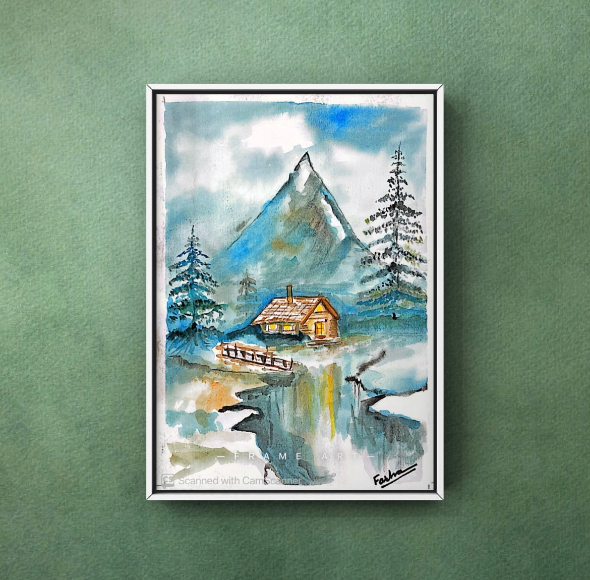 A water painting of Alpine cottage on cans on 300 gsm paper.