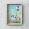 An acrylic painting on canvas panel of butterflies with flowers. Size 50.3 x 30.2 x 0.3 cm.