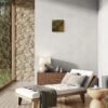 An opulent and textured abstract piece depicting a forest bathed in golden light, with layers of intricate details.